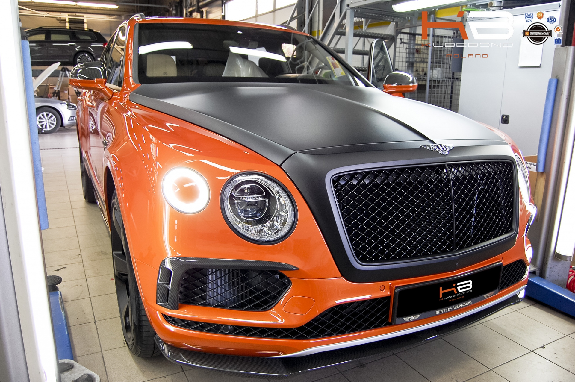 Specjaliści z Centrum Szkoleniowego z Piaseczna na zlecenie Salonu Sprzedaży Bentley Warszawa wykonali zabezpieczenie modelu Bentayga powłoką Nano X . Pomarańczowy Benley dzięki przeprowadzonym zabiegom wyróżniać się będzie nie tylko kolorem, ale również głębokim połyskiem.
