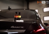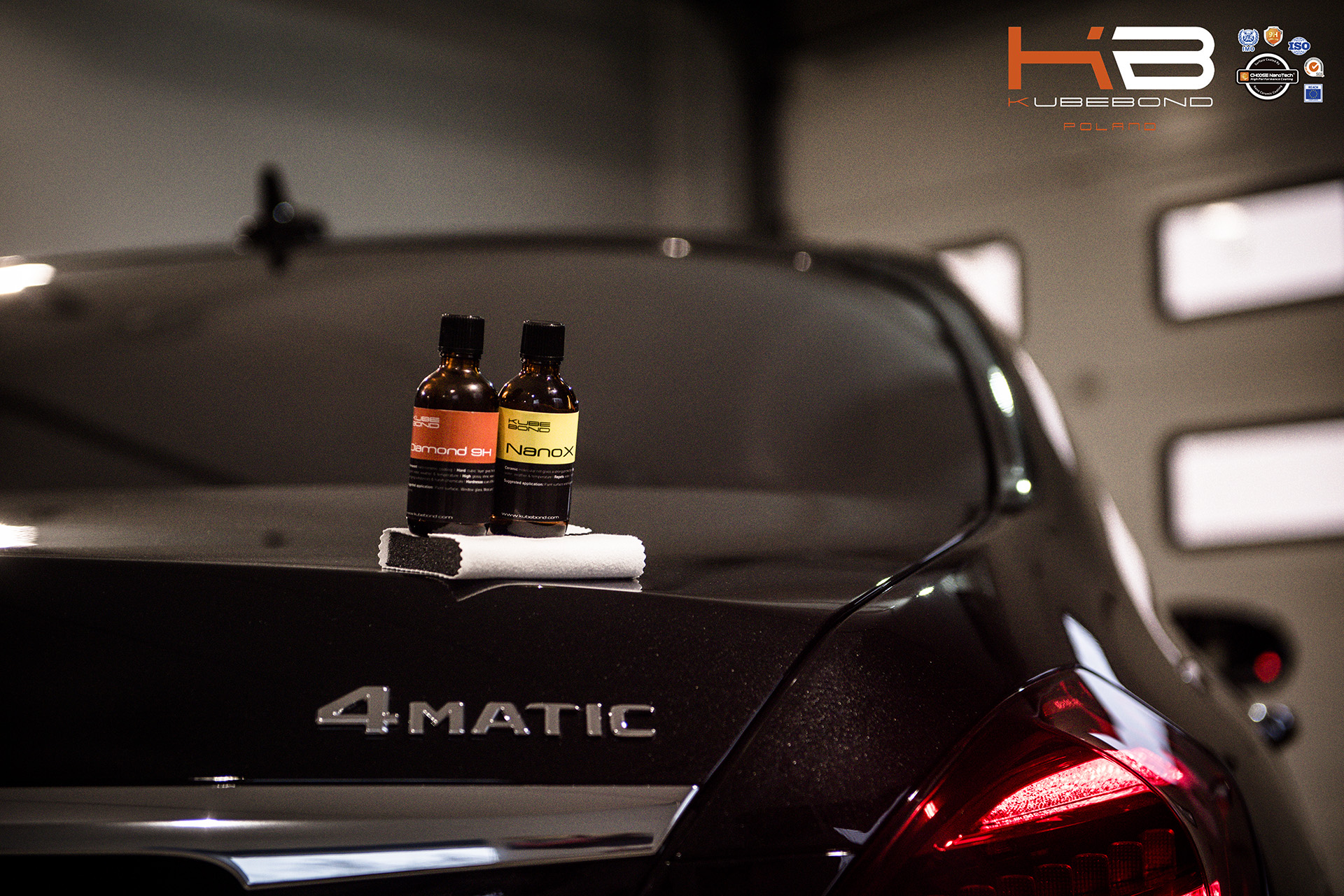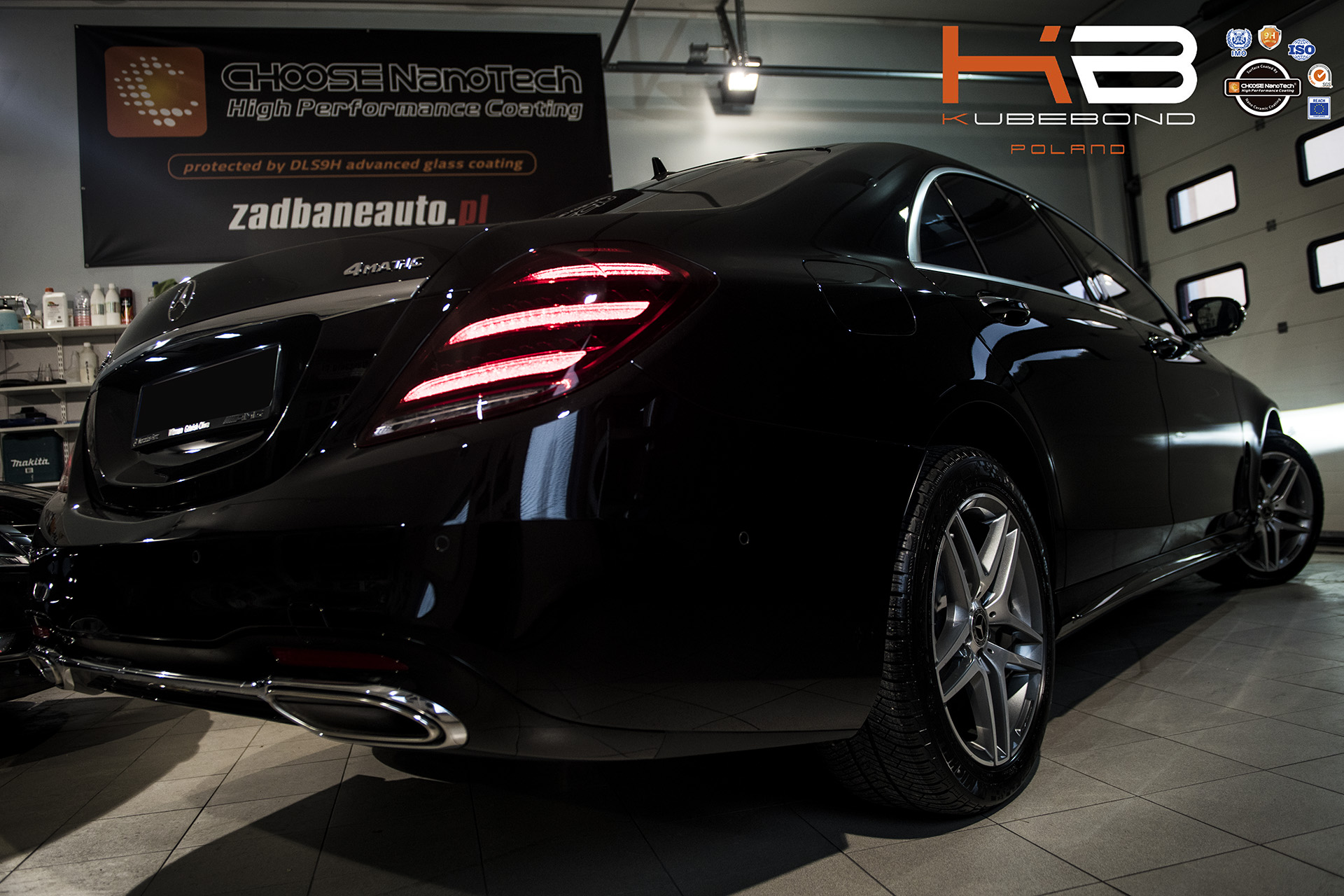 Mercedes S560 przyjechał prosto z warszawskiego Salonu Sprzedaży Mercedesa. Samochód wymagał dwuetapowej korekty lakieru. Następnie, po oczyszczeniu i odtłuszczeniu, powierzchnia lakiernicza została pokryta powłoką hybrydową (Diamond9H + NanoX). Kolejne kroki to zabezpieczenie kloszy lamp, szyb. Atest SGS, Certyfikat KubeBond NanoCeramic to cechy charakterystyczne powłok ceramicznych CHOOSE NanoTech.