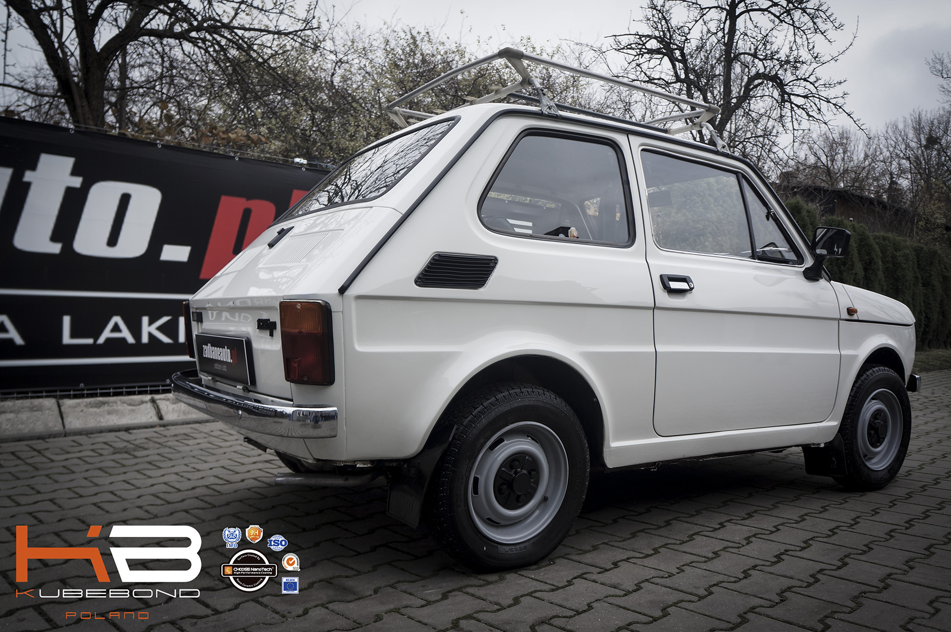 Ostatnio specjaliści z Łodzi mieli przyjemność odnowić i zabezpieczyć lakier w zabytkowym już samochodzie Fiat 126p z 1982 roku. Samochód przeszedł kompleksową renowację powłoki lakierniczej, a następnie zabezpieczyliśmy ją powłoką Diamond 9H wzmocnioną Nano X. Taka ochrona nie tylko zwiększa hydrofbowość, chroni przed promieniami UV, ale znacznie ułatwia utrzymanie pojazdu w czystości.