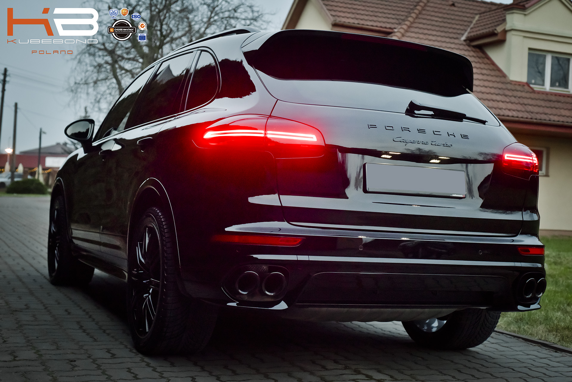 Cayenne Turbo przyjechało do nas z warszawskiego Salonu Porsche. Niestety konieczna była delikatna korekta lakieru. Po odtłuszczeniu został on pokryty wielowarstwową powłoką hybrydową #Diamond9H oraz #NanoX. Podobny proces przeszły (po zdemontowaniu) felgi, tutaj jednak zastosowano bardziej odporną powłokę #DuralBond. Za hydrofobizację szyb odpowiada GlassShield. Ekskluzywne powłoki ceramiczne nie tylko pogłębiły znacząco połysk, ale doskonale chronić będą pojazd, zmniejszając podatność na zabrudzenia, co w przypadku czarnego lakieru i jasnego wnętrza jest niezwykle istotne. Dodatkowo duża hydrofobowość ułatwi pielęgnację auta.