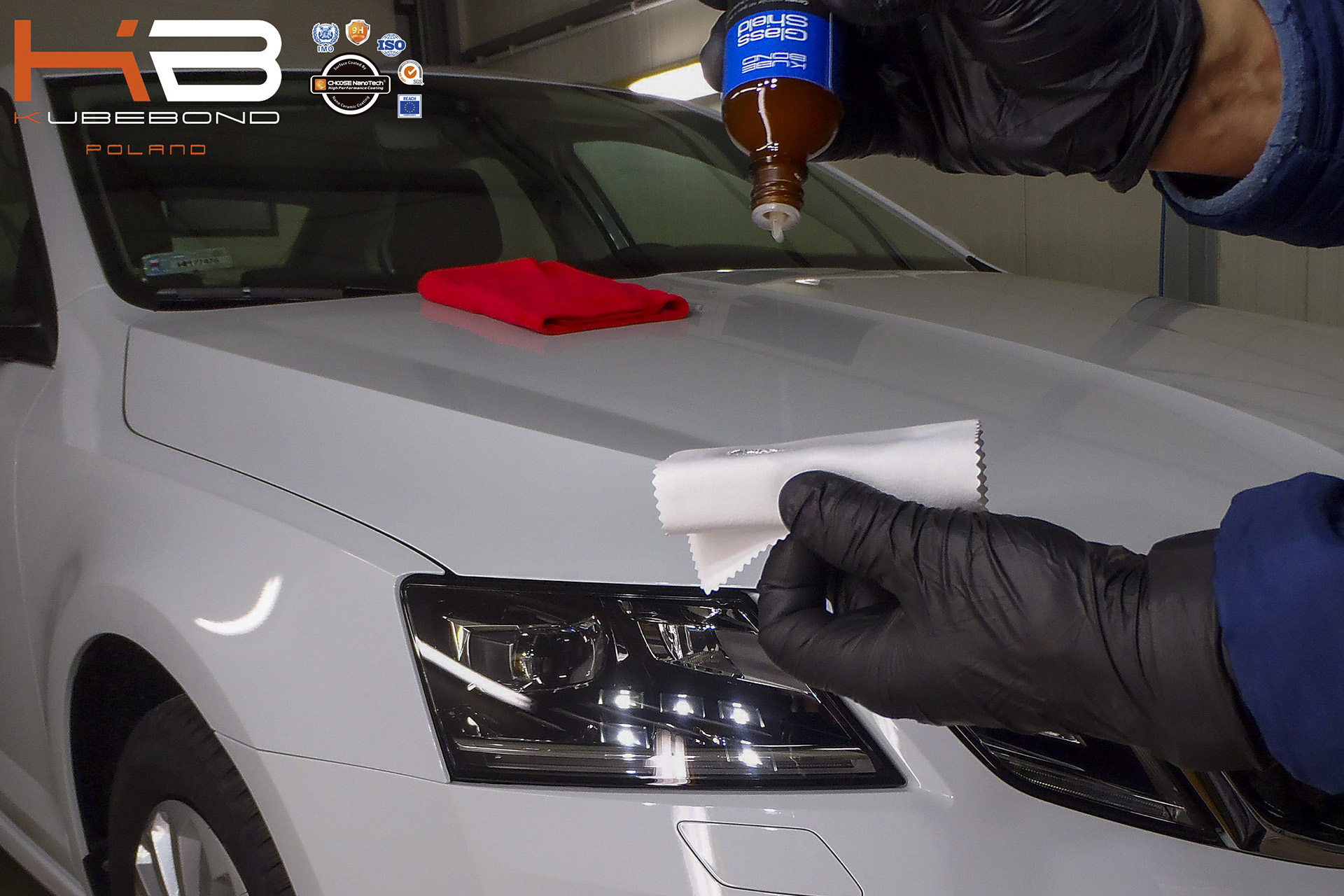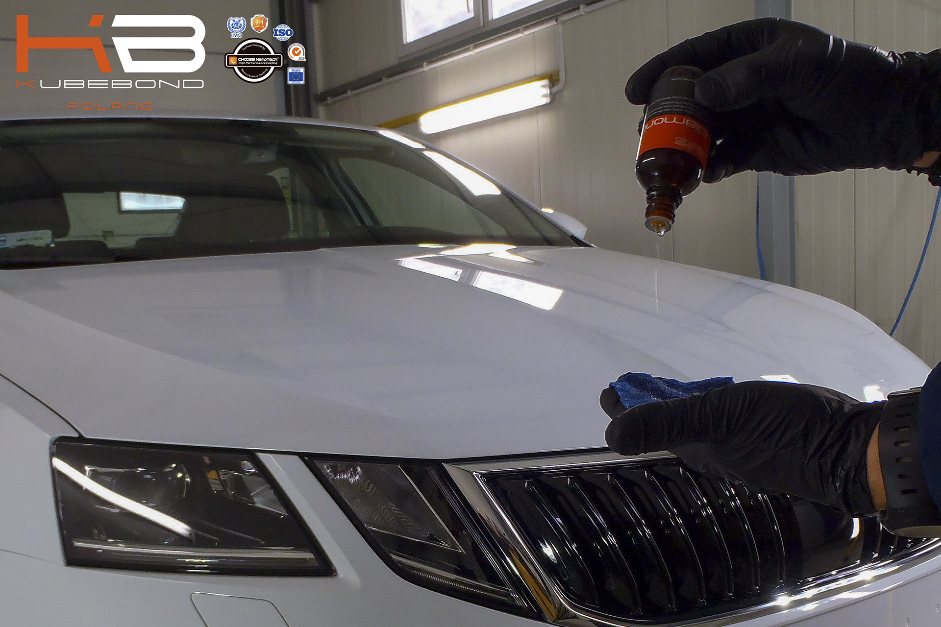 - hydrofobizacja szyb powłoką KUBE BOND Glass Shield